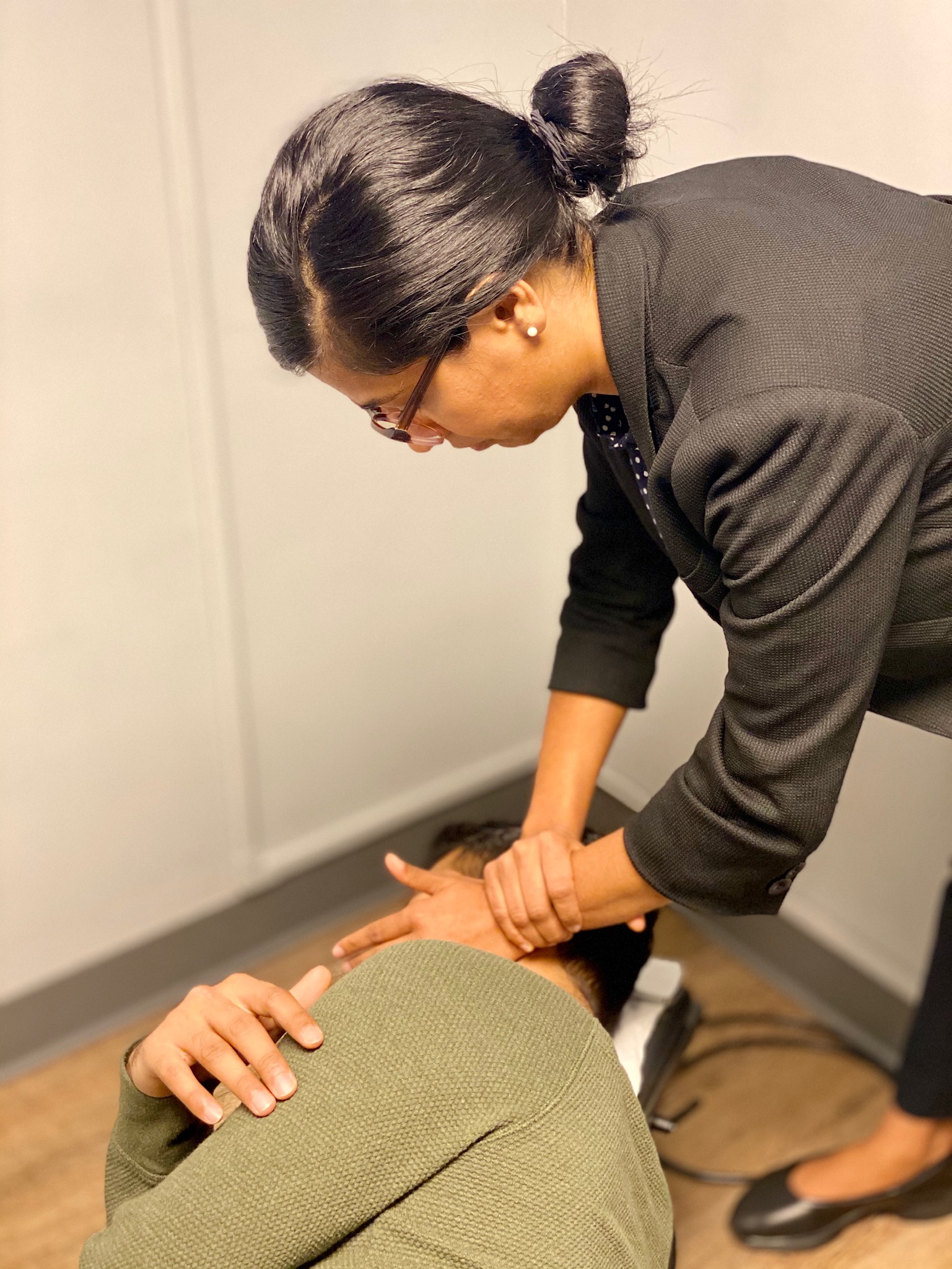 Like with a back adjustment, Dr. Desai will analyze your neck and spinal structure before making an adjustment. She will look for wear and tear in the spine